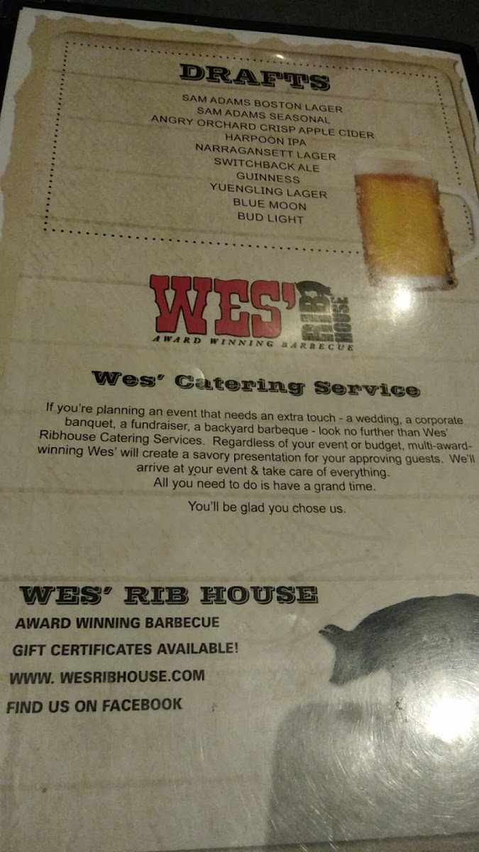 Welcome to Wes' Rib House, a culinary haven for barbecue aficionados nestled in the heart of Providence, Rhode Island. Located at 38 Dike St, this charming establishment is not just a restaurant; it’s a full-bodied experience that draws you in with the enticing aroma of hickory-smoked meats that permeates the air.
